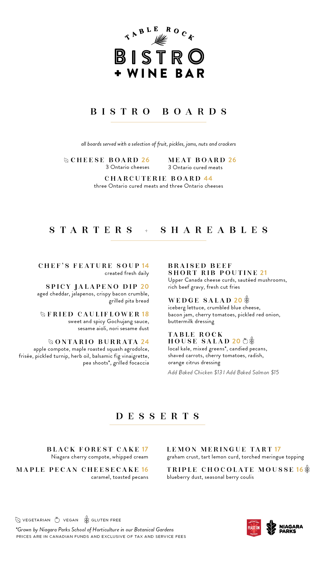 The FeastON certified menu at Table Rock Bistro + Wine Bar is as unforgettable as the view you’ll get. Featuring dishes crafted with locally sourced ingredients, infused with global flavours and culinary expertise, every meal is a feast for the senses.